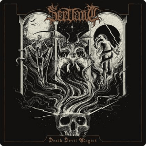 Après deux albums les ayant mis de la plus belle des manières sur la liste des groupes de black métal à suivre de près, les allemands de Servant nous proposent en ce mois de rentrée de découvrir leur troisième album. Intitulé Death Devil Magick, il sera disponible dès le 20 septembre via AOP Records. Neuf titres pour neuf thématiques se rejoignant dans une sublime pochette qui donne envie de plonger au plus vite dans cette nouvelle sortie.