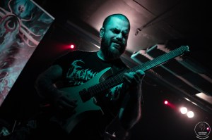 C’est parti pour Exocrine et leur tech death imparable. Nous avions découvert le groupe en live au Motocultor 2022 et il nous tardait de pouvoir les voir dans nos contrées, c’est chose faite ce soir. Le concert commence en trombes avec les lignes de basse dévastatrices et le chant puissant de Jordy Besse. Le groupe de Bordeaux ne laisse rien au hasard et nous offre une leçon de technique décomplexée. Car oui, personne sur scène n’est là pour fanfaronner mais juste pour envoyer des morceaux qui laissent nos cervicales meurtries par les changements de rythmes incessants. En parlant de rythmes Théo Gendron à la batterie livre une performance impressionnante d’énergie et de maîtrise. Côté riffs Sylvain Octor-Perez et Nicolas La Rosa ne sont pas en reste et nous régalent avec des titres comme « Eidolon » ou « Dying Light ». Le groupe présente évidemment le meilleur de Legend mais n’oublie pas le reste de sa discographie avec par exemeple l’excellent « Blast » issu de l’album précédent sorti en 2022. Le groupe, là aussi, semble ravi de voir autant de gens dans la salle et autant d’énergie communicative déployée par le public. C’est un véritable plaisir de voir un groupe aussi heureux de jouer! « The Kraken » remet une dose de tech death endiablé dans nos oreilles chauffées à blanc par la déferlante made in Bordeaux. Exocrine nous offrent vers la fin de soirée « Myato » issu de l’album Molten Giant (2018). Après des remerciements chaleureux le groupe se lance dans ces derniers titres du set avec en particulier « Warlock » qui clôt ce set dans une dernière lame de fond musicale comme on les aime tant. Le public applaudira longtemps le groupe signe que le set des bordelais à clairement convaincu tout le monde dans la salle. On ne pouvait rêver mieux pour retrouver Exocrine sur scène et on espère ne pas devoir attendre aussi longtemps pour les voir revenir dans le coin.