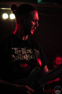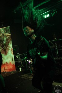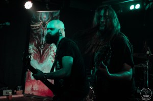 On commence donc avec Frakasm, que de notre côté on découvre ce soir. On sent rapidement que dans le public certains ont déjà vus le groupe et sont ravis de les retrouver après un an et demi sans dates. C’est parti pour une avalanche death servie par Butcher (chant) et sa bande. Les riffs sont percutants et font remuer les têtes sans effort. Les nordistes nous proposent un death métal efficace qui ne laisse personne indifférent. Les petites blagues du chanteur entre les titres renforcent la bonne ambiance qui règne déjà en ce début de soirée. A la rythmique on a le droit aux premiers blasts de la soirée pour s’échauffer les cervicales. Des morceaux comme « Fire In The Sky » ou « Sulphur Revenge » continuent d’impressionner le public avec des riffs toujours ciselés et des lignes de basse et de batterie prêtes à nous retourner les cervicales. Le groupe remercie tout le monde pour l’accueil et nous livre deux derniers titres très réussis qui confirment leur talent de composition et d’interprétation. Une belle découverte qu’on vous invite à faire au plus vite lors de leur prochains passages dans la région!