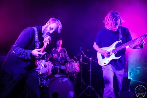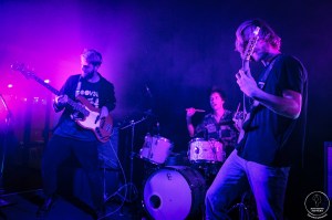 La soirée commence dans une salle largement remplie pour faire la fête avec les amis de The Baptized! Le concert commence avec l’intro de l’album qui nous plonge directement dans leur univers avec des riffs et des rythmiques qui nous font déjà remuer. Puis démarre « Furvent » qui lance définitivement les hostilités. Le groupe semble ravi de pouvoir présenter son album en live après plusieurs mois sans concerts. Evidemment l’énergie qui nous fait adorer le trio est bien présente et Julien (basse), Nicolas (guitare) et Vincent (batterie) nous livrent leur meilleur. Comme ils nous l’avaient annoncé dans l’interview sortie il y a quelques jours sur le site les morceaux sont bien ceux de l’album mais on sent déjà l’envie de s’en affranchir avec des jams ajoutées ça et là qui démarrent sur simple regard entre les trois cousins. Ce qui est fou c’est qu’on sent vraiment la synergie entre eux et que chaque ajout ou modification nous fait redécouvrir des titres qu’on connait pourtant depuis de longs mois. Evidemment le mythique « Libérez Les Baptized » résonnera dans la salle entre deux titres. Chaque piste de l’album jouée révèle tout son potentiel et est largement applaudie par un public définitivement très enthousiaste! Une petite galère obligera Julien à parler plus longuement avec le public mais la fête repartira vite avec « Comète », morceau tiré de leur premier EP. Et là les fans aguerris se rendront compte que non seulement le titre est plus court qu’à l’accoutumée mais qu’il ne sonne tout simplement pas pareil. Et oui, nos trois compères ont décidé de modifier tous les effets à la pédale ainsi que certaines parties de guitare. Le morceau est évidemment reconnaissable mais se dévoile sous un nouveau jour tout aussi engageant. Après un détour par « La Malterie », le morceau pas la salle de concert lilloise, il est temps de terminer en apothéose avec « Storming The Dark » morceau fleuve clôturant l’album du trio. Là encore c’est un titre bourré de surprises qui nous attends puisque les trois musiciens se relancent dans une jam session en plein milieu du titre. Quel plaisir de finir sur cette belle démonstration de talent du trio, qui arrive à nous étonner à chaque nouveau concert qu’on voit! Une release party de haute volée qui nous permet de vous inciter de nouveau à rejoindre l’aventure au plus vite et à aller les voir près de chez vous dès que possible! Bravo The Baptized et longue vie à Exilion!