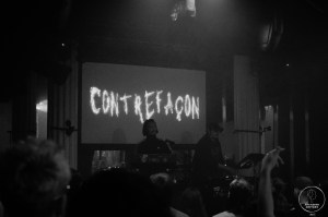 La deuxième partie du concert prend une tournure encore plus orientée techno, transformant le Slalom en ce que l’endroit est habituellement : une boîte de nuit, avec des morceaux comme « ALMA ». Contrefaçon puise également dans son répertoire plus ancien avec « Danser Penser », où Mike Doe descend dans le public, suivi de la caméra de Pierre, responsable de la partie vidéo du groupe. Ce dernier retransmet en direct les images sur l’écran derrière la scène, renforçant l’immersion du public.