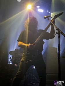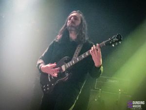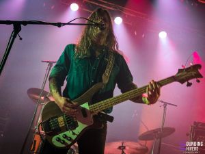 Il est temps d’accueillir Elder sur la scène du Grand Mix pour un retour dans le temps vers 2015! C’est parti pour Lore dans son intégralité et dans l’ordre, de quoi ravir les fans présents en nombre ce soir! Le groupe débute logiquement avec « Compendium » qui nous laisse déjà émerveillés par l’avalanche de talents présente sur scène. Nick DiSalvo et Michael Risberg nous livrent des riffs intemporels qui font voyager l’intégralité du public présent en quelques secondes. Michael laissera de temps à autre sa guitare pour quelques parties de claviers qui ajoutent à la majesté musicale qui vient ravir nos tympans. Arrive « Legend » et ses rythmiques entre stoner et prog absolument captivantes servies par les lignes de basses de Jack Donovan et le jeu de batterie danstesque de Georg Edert clairment au sommet de son art ce soir. Les fans sont aux anges et donnent toute leur énergie à cette formation définitivement unique! Le morceau titre vient prendre la suite et c’est parti pour seize minutes à couper le souffle. Chaque riff, chaque ligne de basse, chaque frappe est ciselée pour nous offrir ce que le stoner prog à de meilleur, le tout avec des musiciens qui prennent définitivement beaucoup de plaisir à nous en mettre des étoiles plein les yeux. Un peu plus court mais tout aussi énergique « Deadweight » vient mettre une fois de plus toute la salle d’accord, avec toujours cette énergie commune qui ne faiblit pas d’un pouce depuis le début du concert. On ne voit clairement pas le temps passer mais les premières notes de « Spirit Of Aphelion » viennent nous rappeler qu’on arrive indubitablement à la fin de cette prestation d’anthologie. Et après une dizaine de minutes passée à la vitesse de l’éclair on se dit que le groupe en a fini pour ce soir mais il n’en est rien. Ils nous proposent un dernier titre issu de l’album Omens, « Halcyon », qui donne l’occasion aux fans de profiter d’une belle dose de musique supplémentaire avec toujours cette maestria évidente qui transparait de chaque note. Les évolutions rythmiques et sonores en mettent plein la vue et nous laissent stupéfaits une ultime fois ce soir. Le groupe quitte la scène largement applaudi par un public émerveillé par le set proposé ce soir. On ne pouvait rêver plus belle soirée et on quitte la salle avec la ferme certitude que ce concert se classera aisément dans ce qu’on a pu voir de meilleur cette année. On imagine aisément le groupe revenir rapidement nous voir lors d’une future tournée, en tout cas on l’espère de tout coeur!