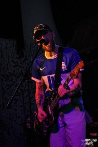Après avoir fait le tour du propriétaire, nous rejoignons le devant de scène afin de découvrir TIPI. On sait peu de choses de ce groupe. Toutefois en arrivant, quelques indices nous ont été donnés. Ainsi nous découvrons qu’il s’agit des membres ou anciens membres de groupes bien connus de la scène punk belge, à savoir Asile, Mr Fartface et Suicides de Lapins. Avec tous ces groupes à leur actif, on sent que la proposition va être de taille! Et en effet, le duo guitare / batterie nous offre une énergie qui dépote. Les titres sont hyper efficaces et taillés pour le live. Les deux protagonistes donnent de la voix et se répondent à un rythme frénétique. C’est simple, le batteur est un véritable fou furieux. Les riffs de guitare de Martin se font eux plus punk rock par moments, mais dégagent aussi parfois une vibe punk hardcore virulente. On sent même dans certains passages un esprit un peu plus psyché et lourd, alors même que la formation n’a pas de basse! L’ensemble a clairement des influences garage. Le duo a sorti un album en début d’année intitulé SEX&BANANA. et nous présente ici une bonne partie des morceaux. Makhno (batterie) est debout sur sa batterie pendant “I WANNA CHECK SOME P0RN.”, en caleçon…mais n’en oubliant pas la classe et l’élégance grâce à une chemise! Le tempo ne faiblit jamais. TIPI. envoie des patates à n’en plus finir, avec cette énergie décalée propre à la scène punk belge. Des titres comme “I WANNA HAVE SEX.” (with my ex) en témoignent. Les trente minutes de set sont un régal pour les oreilles. On remercie l’organisation qui a totalement géré cette première partie. On s’est retrouvé face à un groupe avec la même configuration que la tête d’affiche, et bien connu du public belge qui a de fait répondu présent en nombre. Une petite pépite très à propos sur cette soirée donc!