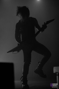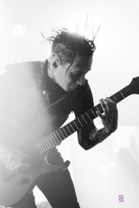 Just enough time to freshen up, and it was finally time to see Motionless In White! The crowd had become very compact in the front rows, while the back had clearly thinned out, and we soon found out why. From the very first track, “Disguise”, the crowd are singing at the top of their lungs, and we soon realize that we’re dealing with an audience of fans who are going to give their voices, maybe even more than just move. No words are missed in the front rows, and everyone can take advantage of the fact that 3 screens are set up at the back of the stage, broadcasting live images of the artists and audience. This is something we’ve never seen before at L’Aéronef, as this kind of screen broadcasting is usually reserved for larger venues. Chris Motionless on vocals is quite calm, while Justin Morrow on bass runs around in his scary clown look. After the deathcore of Paleface Swiss, you can feel that the atmosphere has died down a little, even if certain breakdowns, such as the one on “Thoughts & Prayers”, put everyone on the same wavelength. The famous “Abigail” gets everyone singing along, and launches the start of the slammers. Motionless In White take us on a journey through different worlds, from Dexter to The Matrix, before plunging us into a totally dark room, red flashing lights and alarm on “Death March”. Visually, the band give it their all, and take a French flag for the famous “Slaughterhouse” before THE track everyone’s been waiting for: “Voices”. A vocal dub was heard, a pity for a band of this stature, but the audience paid it no mind. The audience was won over, and we clearly felt a definite craze for tracks from their 2017 album Graveyard Shift. Motionless In White went from one track to the next, and although we could feel that the audience was there to sing along, they were clearly missing that little something extra that makes their concert so unforgettable.