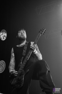 The time for violence then arrived with Paleface Swiss. Let’s face it, their name on this bill had surprised us at first, due to the violence of their concerts, whereas the other two names were much calmer. And it showed. We counted twenty or so people who told us they were there tonight, mainly for the Swiss. So it was to a packed house that Paleface Swiss stormed the stage, kicking off their set with a big wall of sound followed by a “FUCK!”, and the pit burst into flames. Zelli on vocals starts running around, and impresses us with her screaming vocals that are both fast and sharp. Tonight, the Swiss speak loud and clear about their convictions and values. The title track “Enough?” begins with a kiss between Cassi Toma on drums and Zelli the singer, to scare off any homophobes in the room. The band only have a short time on stage, but enough to give us a global palette of their discography, even going so far as to put in the famous quieter moment when the phone lights come out. An avalanche of crowdsurfers brought the concert to a close, with the crowd going wild. Paleface Swiss’s deathcore was IMPECABLE. A pure success, totally in line with the other performances we’ve seen from this band. Don’t forget their name, they climb at breakneck speed.