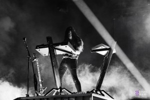 As the last light of day fades, Perturbator take their time setting the mood. Positioned on a platform, James Kent is surrounded by his keyboards, ready to send us his synthwave with a slightly more metallic sound, while to his left is a drummer who accentuates the rhythm and introduces a little more dynamism. The first half of the concert is almost contemplative, before the bass and beats get heavier. A pit forms and bodies start to move. It’s not full, but it’s perfect for those who’ve come to dance.