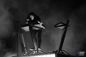 Alors que les dernières lueurs du jour disparaissent, Perturbator prend son temps pour installer l’ambiance. Placer sur un plateforme, James Kent est entouré de ses claviers prêt à nous envoyer sa synthwave au sonorité un peu plus métalliques tandis qu’à sa gauche se trouve un batteur qui accentue le rythme et permet d’introduire un peu plus de dynamisme. La première moitié du concert est presque contemplative, avant que les basses et les beats ne deviennent plus lourds. Un pit se forme, les corps commencent à se mouvoir. Ce n’est pas plein, mais c’est parfait pour ceux venus danser.