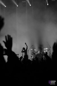 Thrice, also at the end of their tour, followed on from Dead Poet Society, but on a slightly larger scale. Lots of people, lots of voices rising in chorus. A solid set covering their discography, with must-have tracks like the soaring ‘Black Honey’ and ‘Hurricane’, or “Deadbolt” and ‘The Artist In The Ambulance’, which introduce a stronger energy. The whole set seems to be driven by a powerful, introspective vibe.