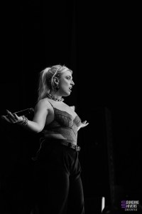 Poppy a taillé sa setlist pour un festival de métal, son côté pop n’apparaît qu’à l’intérieur de quelques morceaux comme « have you had enough? » qui ouvre le set en douceur avant que ses screams et les guitares saturés prennent le dessus. Les premières notes de « V.A.N. » nous surprennent mais c’est finalement un très bon titre pour continuer le set et surtout donner de l’énergie au public. L’esthétique millimétrée du show, parfaitement assumée, ne nuit en rien à son impact, les fans rugissent de joie à chaque nouveau morceau. Les pogos et les wall of death s’ouvrent, les slams s’enchaînent : un contraste scénique aussi fort que réussi.