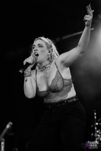 Pour continuer la journée, Vukovi a électrisé la foule avec une prestation débordante d’énergie. La chanteuse se balade sur la scène faisant le lien avec les deux musiciens bien plus statiques. Janine Shilstone a multiplié les interactions : balade dans le public, captures vidéo avec les téléphones des fans… Une proximité qui rend l’énergie encore plus palpable. Malgré un souci technique du côté de la batterie en milieu de set, le show reprend rapidement. Des titres comme « Bladed » ou « My God Has Got A Gun » ont parfaitement mis en valeur le dernier album, dont l’énergie contagieuse se ressent autant sur scène qu’en studio notamment sur le titre « La Di Da » qui clôture le set. C’était leur premier festival de l’été, et ils l’ont honoré avec une intensité folle.