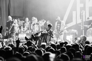 Après ça on a encore envie de danser, alors direction le show de Zebrahead qui apporte l’une des meilleures doses de fun du week-end dans un chapiteau plus que blindé. Avant même la première chanson, ils réclament un pit. L’ambiance est délirante : anniversaire sur scène, règles absurdes (« no sex on stage ») lorsque tout le monde est invité à rejoindre le groupe sur scène, un bar dans un coin de la scène, un bateau gonflable sur la foule, tout y passe. Le groupe déclenche des circle pits géants, un wall of death sur « Everything Falls Apart », et lance un bateau gonflable avec deux personnes dessus pour qu’ils aillent le plus vite possible dans le circle pit de « All My Friends Are Nobody ». Le tout se termine par un énième circle pit autour du chanteur pour « Anthem ». Un vrai moment de festival où notre sourire ne quitte pas nos lèvres pendant le set (et après).