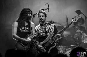 Direction la petite salle pour y voir Astrosaur, que nous sommes ravi de retrouver après leur passage à la Malterie en 2023. Le trio nous envoie avec énergie un rock instrumental psyché à souhait des plus énergiques qui nous captive dès les premiers instants. Le combo norvégien trône dans nos écoutes régulières depuis leur toute première sortie et réentendre en live nos titres favoris est un pur plaisir. Les riffs de Eirik Kråkenes viennent se mêler aux lignes de basse teintées de stoner de Steinar Glas le tout sublimé par la batterie versatile de Jonatan Eikum. L’ambiance dans la petite salle est électrique et même si le silence règne toujours en maître, on sent un vrai enthousiasme dans l’accueil que le public du festival réserve au groupe venu d’Oslo. Les morceaux sont majestueux et viennent piocher dans de nombreux styles pour un univers unique, qui a toujours fait la force de la formation. Nous voilà emportés par la musique de la plus belle des manières avec des titres longs et emplis de variation sonores toutes plus réussies les unes que les autres. On ne peut que vous conseiller de replonger dans Portals et le reste de leur discographie au plus vite, et de notre côté on espère les voir revenir en France dès que possible, peut être avec un nouveau disque sous le bras.