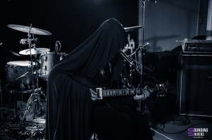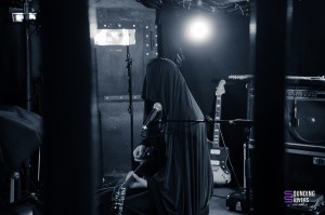 So we kick off the evening with Sunwell, a musical/poetic offering from Elya, whom we already know from Deûle, Ladeûlas, Otto Ruth, Death By Fog, and Morveux. In short, she is one of the most prolific artists on the Lille scene, and also one of the founders of GZL VNR. Draped in black from head to toe, we feel as if we are facing a figure from the night, coming to tell us about her past adventures. If you love cable management, you won’t be disappointed. Elya masterfully controls the different effects, textures, and soundscapes she creates with her guitar and voice during her performance. With a very minimalist set design in the middle of the stage, pivoting on her chair between the two pedalboards, Sunwell fulfills her role as a storyteller to perfection, with the audience sitting down so as not to miss a single note. It was a very intimate set that provided the perfect start to the evening.