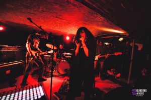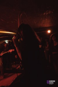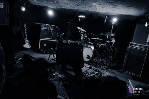 Nous passons ensuite au post Rock de Bank Myna, groupe parisien que nous avons déjà pu expérimenter au Post in Paris en 2023. De la présence intimiste de Sunwell, nous arrivons au quatuor qui déborde de la scène de la Malterie. Le groupe arrive avec un attirail d’instruments à ne plus savoir quoi en faire un clavier, un violon et des ustensiles de percussion pour les instruments à corde. Ainsi nous avons pu voir une guitare jouée comme un violon, une basse qui a pris des coups de baguette de batterie. Un son original, très cinématographique qui a pu me faire penser à la BO de Death Stranding notamment sur “No Ocean of Thoughts” . La voix de Maud embellit à merveille ce mélange envoûtant où la percussion est le centre névralgique rendant la prestation du groupe à la frontière du spirituel. Les incantations à répétition ont réussi à emmener toute la salle dans l’univers du groupe qui nous amène tout doucement vers le doom drone de Nadja.