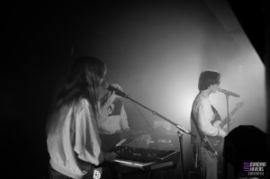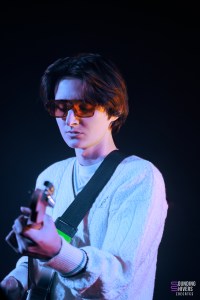 Accompanied by two musicians whom he will introduce later – Jules on guitar and keyboards, and Sacha (from the Furtive project) on synths and vocals – Mattyeux opens the set with ‘Sometimes’, his track recorded with Princess Chelsea. Princess Chelsea’s voice floats over a backing track, with Mattyeux only contributing to one verse, but from the next track, ‘16 ans’, he takes full control of the concert. Guitar in hand, he confides that adolescence is ‘a time that should never end, but that’s how it is’, giving the song an intimate and touching tone. Later in the set, he returns to his solo debut with ‘Break Up Diaries’, his first single, while rejoicing aloud at seeing the audience already singing along to the lyrics.