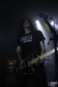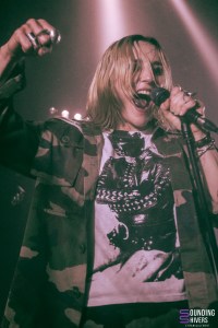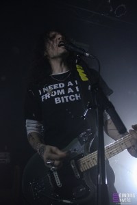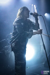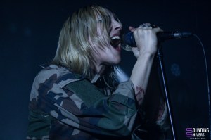Six petits mois depuis leur dernier passage dans la métropole Lilloise, les parisiens de chest. continuent de faire les ouvertures des meilleures soirées post punk de Lille. C’est sur la bande son d’Harry Potter par John Williams que le groupe rentra sur scène, devant un public déjà bien chaud ! Avec leur post punk d’une efficacité folle, ils enchaineront les titres plein d’humour, même dans les thèmes aussi sombre que la mort d’un animal de compagnie. Chest nous feront également découvrir « Castor », titre inédit qu’ils jouaient ici pour la deuxième fois de leur carrière. De notre côté, on est totalement envoûté par les parisiens, qui ne cessent de monter dans nos coups de coeur. Les musiciens semblent s’éclater autant que nous, et c’est avec le sourire qu’on finit le set devant le guitare qui utilise sa gourde comme bottleneck pour faire vibrer ses cordes. En bref, un set convaincant, parfait pour nous chauffer suffisamment avant d’accueillir Jehnny Beth !