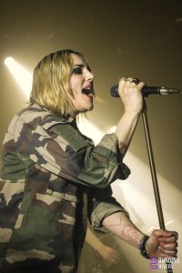 Changement de plateau rapide, les nordistes (et belges présents en nombre dans la salle) se collent au plus prêt de la scène pour accueillir Jehnny Beth et ses musiciens. Impossible de passer à côté de l’artiste en 2025. Que ce soit grâce à sa carrière cinématographique, ou sa carrière musicale, l’artiste a fait parler d’elle ces dernières années. Avec des titres marquants, ou encore en couverture du nouveau New Noise qu’on vous encourage à lire, Jehnny fait parti de ces artistes inspirantes et pleine de folie qui nous font crier « allez les girls ! » Et il est clair que cette manière de penser est aussi dans les tripes de l’artiste, puisqu’elle demandera aux femmes de venir se placer au premier rang, laissant au dépourvu mes collègues photographes hommes qui s’étaient placé au plus près de l’artiste. Entouré de Johnny Hostile à la guitare, qui d’ailleurs est arboré en patch sur les vêtements de la chanteuse, Wendy Killman à la batterie et du Lillois Hughes Rive à la batterie, le quatuor est plein d’énergie et le public leur rends bien. Une sorte de wall of death s’ouvrira même pendant les premiers morceaux, avant que le public ne porte Jehnny alors qu’elle placarde une lumière rouge en plein sur son visage pour « I’m The Man ». Dans la salle, on retrouvera un public de tout âge, qui vaudra même un petit « je suis fan de ce public ». Quoi de mieux pour lancer sa tournée que de voir qu’on fait l’unanimité ? Peut importe donc l’âge, tout le public se prends au jeu du pogo, notamment sur le titre « Obssession » où la basse est magistrale. On retrouve dans les sonorités de Jehnny Beth tant d’inspiration, à la fois dans le post punk qui a marqué le début de sa carrière avec Savages, mais aussi la noise et quelques passages trip hop. Quel plaisir d’entendre une telle diversité musicale pour un univers aussi singulier que le sien, et même dans ses reprises de Björk ou encore Quicksand, la patte de l’artiste est bien présente. Le concert se cloturera avec « I See Your Pain » à la tension qui monte en crescendo, jusqu’à l’implosion.