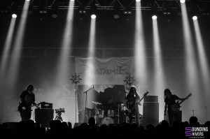 Pour ouvrir cette journée c’est les rouennais de Ataraxie qui débarquent sur la grande scène de l’Aéronef. On ne connaissais pas le groupe pour être honnête mais il ne nous faudra que quelques notes pour plonger dans leur funeral doom death avec envie. Le groupe se lance dans un premier morceau d’une vingtaine de minutes où parles en français et en anglais se mêlent avec brio. Les guitares de Julien Payan (Sordide), Hugo Gaspar (Mälemort) et Frédéric Patte-Brasseur (Conviction) nous emportent dans un océan de dévastation qui nous fout des frissons en quelques instants. Côté rythmique c’est Pierre Sénécal (Chaos Dei) à la batterie et Jonathan Théry (Funeralium) à la basse qui nous livrent un jeu puissant qui renforce ce sentiment d’être enveloppé par la musique. Jonathan excelle également au chant et vient ensuite nous présenter le second et dernier titre du set à savoir « The Collapse ». Nous voilà repartis pour une belle démonstration de funeral doom par un groupe qui vient marquer les esprits avec une prestation sans fioritures mais pleine de sincérité. Encore une fois la composition regorge de moments magistraux et même de petites pauses où un des guitaristes garde son riff pendant que le reste du groupe peut s’hydrater ou se préparer à la partie suivante. On ne saurait dire à quel point les émotions étaient fortes mais nous sommes ressortis du set de Ataraxie avec l’envie de plonger dans leur discographie au plus vite et en espérant les revoir du côté de Lille aussi vite que possible.