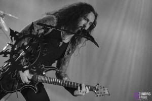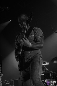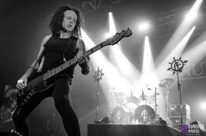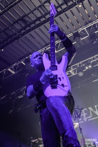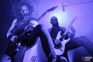 Après une pause pour profiter des stands et se remettre de nos émotions nous voilà prêts à voir pour la première fois en live Sinsaenum! Le groupe débarque sur la scène avec son tout nouveau line up ainsi que nul autre que Aires Pereira de Moonspell à la basse en remplacement de Heimoth, absent pour cause de dates avec Seth. Dès « In Devastation » on se prend le death métal du groupe en pleine face et clairement c’est un pur bonheur. Le local de l’étape, Stéphane Buriez excelle à la guitare et n’hésite pas à donner de la voix sur les chœurs. Frédéric Leclercq quant à lui nous balance également ses meilleurs riffs et nous montre une fois de plus à quel point il est un des tout meilleur guitaristes de l’hexagone! « Ashes » ou encore « Sacred Martyr » laissent Sean Zatorsky (Dååth) nous en mettre plein la vue avec son chant hurlé surpuissant. Côté batterie on découvre le jeu de Andre Joyzi, ayant remplacé le regretté Joey Jordison, mais qui s’avère être son ancien drum tech! Autant dire que le musicien n’hésite pas une seconde à mettre tout son coeur dans les morceaux interprétés à l’origine par son ami, mais également dans les titres du dernier disque en date, In Devastation, sur le quel il a travaillé. Un pur déluge de riffs et de blast vient ravir nos oreilles tout au long du set, et lorsque « My Swan Song » et « Final Resolve » résonnent dans l’Aéronef on se bit qu’on ne pouvait rêver plus belle première fois en live que cette prestation. On avoue que le death métal est peut être un peu moins notre style de prédilection mais force est de constater que Sinsaenum savent convaincre avec des titres tous plus efficaces et captivants les uns que les autres.