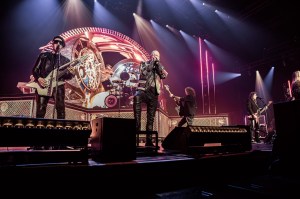 Côté guitares nous sommes également servis avec pas moins de trois guitaristes sur scène, Kai bien sûr mais également Michael Weikath ainsi que Sascha Gerstner et ses guitares toutes plus impressionnantes les unes que les autres. Les riffs de « This Is Tokyo » ou « Twilight Of The Gods » nous rappellent à quel point la formation allemande sait composer des morceaux inoubliables emplis de parties de guitare de haute volée. Côté rythmique c’est également du tout bon avec Markus Grosskopf à la basse et Daniel Löble derrière les fûts, tous deux impériaux ce soir. « Ride The Sky » sera une fois de plus chanté en choeur par un public aux anges. Petit tour en 1998 avec « Hey Lord! » avant de se prendre en pleine face « Universe (Gravity For Hearts) », morceau tiré du dernier album en date et déjà bien encré dans l’esprit des fans. On voit que ces 40 ans de carrière n’ont pas d’impact sur la formation tant ce titre regorge de tout ce qui fait la force des allemands depuis leurs débuts. Après un « Hell Was Made In Heaven » qui ravit les fans de Rabbit Don’t Come Easy (2003), Daniel Löble se lancera dans un solo de batterie dantesque applaudit à tout rompre par une salle conquise. Solo qui sera d’ailleurs suivi par le tubesque « I Want Out », morceau on ne peut plus culte de la discographie des allemands, et qui n’a pas pris une ride!