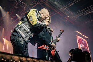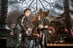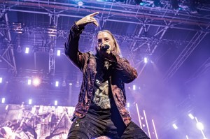 Michael et Andi, magistraux depuis le début du set, viennent se placer au centre de l’avant scène avec des guitares acoustiques pour un petit interlude douceur qui nous permet de profiter pleinement de leurs voix si captivantes. Ils en profiteront donc pour blaguer sur la prononciation en français de leur prénoms respectifs. On commence avec « In the Middle of a Heartbeat » chanté par Andi qui vient nous coller des frissons avant de passer à « A Tale That Wasn’t Right » chantée cette fois-ci par Michael qui est rejoint en fin de titre par tout le groupe. Ce moment montre que le power métal du groupe sait se faire plus doux et émouvant et que les deux chanteurs excellent à faire passer cette émotion.