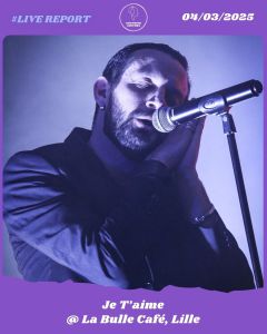 On était donc reparti pour une nouvelle soirée complètement dingue, qui allait forcément nous perturber jusqu’au bout de la nuit. Et on avait à parier que ça allait être dur de décrocher, tant l’affiche de ce samedi 1er novembre était comme sa petite sœur de la veille, à nouveau extrêmement alléchante. Certains n’étaient venus que pour le vendredi, d’autres pour le samedi, et pour les plus téméraires et les plus déterminés, le weekend complet. Car oui, on voulait tous notre dose de Goth, dans tous les sens du terme, que ça soit du Post-punk, de la Dark Wave, de la Cold wave, du Rock gothique, de l’Electro-Industriel, du Dark Ambient, j’en passe et des meilleures. Nous ne sommes pas là pour écrire une thèse sur les différents courants musicaux qui constituent le mouvement Goth, bien au contraire. Juste là pour vivre le moment présent, et quel moment ! Pour commencer cette nouvelle soirée préparée avec le plus grand soin, on commençait donc en introduction de notre bal des vampires avec une succulente surprise-partie qui vira rapidement en petite sauterie organisée et merveilleusement barrée avec Je T’aime. Je T’aime nous viennent tout droit de la capitale et se sont formés en 2018. Quelques années déjà qu’ils sillonnent les routes à la recherche de la moindre salle à faire exploser la charpente et mettre le feu aux bâtisses, tant leur mélange de Post-punk, Dark wave et Synthpop est autant frais qu’il vous envoie du bois en pleine face. Avec un esprit clairement branché provoc, revendiqué, et fière de l’être, nos trois loustics s’imposent aisément dans un style trempé et bien à eux. En mixant l’attitude Rock couplée à la scène Electro underground, ils arrivent à se faire une jolie place en première partie de The Dark Lab, avec allégresse et sensualité. Leur morceaux sont sex et sexy, bercés dans un érotisme aux sonorités frisant avec une déprime lubrique sentant la sueur à bout de nez, mais tout aussi dark et enjouée. Un Paris désabusé qui sent bon la pluie, les ruelles sombres, les néons roses de Pigalle, l’alcool et autres substances illicites. La musique de Je T’aime est sulfureuse, vous l’aurez bien compris, et c’est ça qu’on aime. Dans un érotisme ou la jouissance musicale est de mise, leurs morceaux sentent bon les peines de coeurs, les couteaux dans le dos, les jeans serrés et les perfectos. Je T’Aime nous déroule un univers d’une certaine noirceur, une mélancolie maussade, blasée mais aussi un brin fêlé de par sa beauté, et qui sent bon les lendemains cafés clopes en mode gueule de bois avec la barbe de trois jours et sur le biceps, le tatoo coeur brisé. Des superbes mélodies vocales entraînantes dans une atmosphère Electro dansante, sur une ligne de basse pêchue , qui nous donne comme l’envie de siffloter leurs titres en se dandinant dans la rue. Avec quelques singles à leur actif, un EP de remixes, un album live Live at Gibus et quatre albums dont leur dernier en date Useless Boy (paru cette année), nos joyeux loulous de Je T’Aime nous aurons fait le plaisir de nous jouer un live Rock n’ Roll et électrique de quarante cinq minutes de pure plaisir piquant, excitant et véritablement rentre dedans. En tout cas une chose est sûre, Je T’Aime, nous, on les aime !