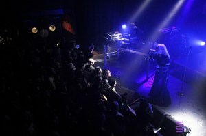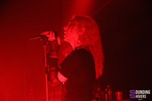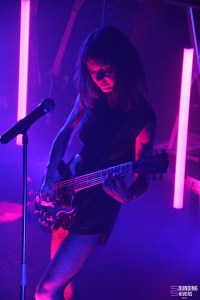 On passe maintenant à une ambiance beaucoup plus trippante et envoutante avec les Polonais de NNHMN. Venu de Varsovie et installé aujourd’hui à Berlin, tant la scène Electro à quelque chose d’unique en son genre à offrir, le duo est composé de Lee Laudarg et de Michal Laudarg. Leur musique est clairement un joli mélange de Dark wave, Synthpop, Techno Industrielle, allant chercher jusqu’à la Minimal Synth ou même l’EBM. Dès leurs premiers morceaux commencés, on a du mal à ne pas se laisser entraîner par les basses fractales et syncopée, nous emportant subitement dans un vortex intemporel, agréablement hypnotique dont on se laisse tout naturellement happer. Leurs morceaux sont variés, tantôt à la limite d’une certaine transe électronique, tantôt dans une Dark wave lourde et exquise. Les compositions de NNHMN sont éclectiques et ont l’art et la manière de savoir nous tenir en haleine tant les variétés rythmiques de Michal Laudarg sont de mise. Quant à Lee Laudarg, sa voix vient se poser précisément sur chaque intonation électronique de basse synthétique. Le public, aime, apprécie, et se laisse transporter, comme dans un voyage sans fin, où l’on tomberait dans un abîme sans fond, mais toujours doux moelleux et sécure. Un univers pastel et vaporeux, fait pour se laisser emporter par des songes étranges et cotonneux, dans une magnificence presque parfaitement contrôlée. NNHMN est un soleil d’or dans une brume glaciale d’hiver. Bardé de sonorités et d’harmonies tranquilles, tempérées ou même enivrantes, changeantes comme si elles étaient soumises au rythme des saisons, NNHMN nous délecte d’un univers mielleux dans un ciel liquoreux. Un savoureux mélange dont le public de The Black Lab est littéralement friand, vu que leurs compositions reflètent typiquement l’esprit des 80’s qu’on aime tant et qu’on était tous venus chercher ce soir. Avec quelques singles et EP’s ainsi que trois albums dont le dernier en date Circle of Doom (paru en 2023) NNHMN nous à délivré un live d’une petite heure, nous invitant à plonger dans un univers nocturne, intimiste, sensuel et sexuel dont on s’en souviendra forcément et ce pendant longtemps.