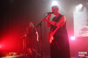 After a crazy Friday and an equally passionate Saturday, The Dark Lab decided to calm things down a bit by inviting a remarkable band to bring this final evening to a fitting close. Forever Grey were our guests on Sunday, and the audience and its last remaining veterans, who had stayed on their feet throughout three exhausting but incredibly passionate nights, were ready for them. Much fewer in number but still eager to see this last band on stage to bring The Dark Lab to a perfect close, our goths gathered to celebrate together this memorable and intensely rare weekend. Forevere Grey is an American trio from Grand Rapids, Michigan, which was formed in November 2014 and already has a decade or so under its belt. A trio, but a duo in live performances, composed of Kevin Czarnik (vocals, guitar), Anna Schmidt (vocals and synth, performing live) and Samantha ‘Sam’ Kubiak (founding member of Forever Grey). The band delivers a sound of inveterate mysticism, navigating the murky waters between minimal wave, dark wave, cold wave, post-punk and gothic rock. With a hazy, even ghostly spirit, their delicate strangeness and captivating sensitivity immediately attracted the audience at The Dark Lab, who were quickly seduced by this atypical duo. With typically ethereal and nebulous sounds, always managing to retain their unique and unusual side, Forever Grey passionately flirts with a mysterious and bewitching universe. In a captivating and almost disturbing atmosphere, Kevin Czarnik hypnotises us with his intoxicating deep voice, possessed by a thousand souls unable to find inner peace. His guitar melodies delicately accompany Anna Schmidt‘s synth arrangements, lulling us into an exquisite and delicious sonic anomaly. Some parts of the vocals are sung by Kevin Czarnik, others by Anna Schmidt, and still others are sung together to intensify this particularly sought-after and skilfully crafted atmosphere, further accentuating the supernatural, even paranormal world that Forever Grey offers us, and this with the greatest of pleasure. Not to mention their rhythmic parts, immersed in absorbing, even fascinating electronics. With a few singles, EPs and four studio albums, the latest of which is Sympathy Garden (released on April 1st 2022), Forever Grey gave us the pleasure of closing The Dark Lab with an hour-long live performance, in a mysterious coldness, flirting with heightened sentimentality, inviting us to abandon ourselves to a universe that made us forget for a moment that we still had our feet firmly on the ground.