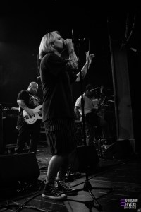 The audience is more responsive, and the first stage dives of the evening are not long in coming. Emma’s energy, as she 2-steps on stage with a big smile, is more than infectious. The whole band shares this good mood, often exchanging glances and smiles. Dying Wish covers their discography well, balancing their setlist between new songs and old tracks like ‘Symptoms of Survival’ and ‘Coward Feeds, Coward Bleeds’.