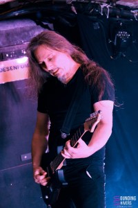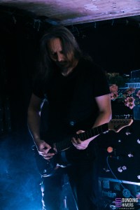 Nous avions découvert Cérès à la Brat Cave en juillet dernier. La formation nous emmène dans son univers par une introduction sombre, autant musicalement que lumineusement. Les lights viennent ensuite éclairer la scène. Le quatuor envoie des riffs mélodiques et sombres. On entend en premier lieu une influence black majeure, qui laisse toutefois la place à d’autres styles. La présence de deux guitares vient donner une certaine complexité et une richesse aux sonorités. La base rythmique est bien solide, et la basse très présente dans le mix. Cela apporte un côté doom aux compositions de la formation, qui se révèle de plus en plus au fur et à mesure du set. Les passages instrumentaux ambiants nous embarquent totalement. Certains sont même envoûtants voire émouvants. Le chant se fait parfois plus clair, mais toujours profond et particulièrement juste. Cérès est un vecteur d’émotions et de puissance. On est happés par les passages plus lents et lourds, tandis qu’on se sent aspirés par ceux qui sont plus énergiques. Ainsi, le dernier titre de la soirée démarre de manière dynamique. Puis, se décomposant en plusieurs mouvements à l’instar d’une œuvre longue de musique classique, il nous dévoile bien d’autres facettes. Les compositions de Cérès sont complexes et particulièrement travaillées. Elles semblent nous raconter une histoire, avec ses rebondissements, ses temps forts, ses pauses, ses passages plus doux… Bref, ce concert très prenant confirme que l’on est totalement conquis par la formation, qui assure remarquablement en live.