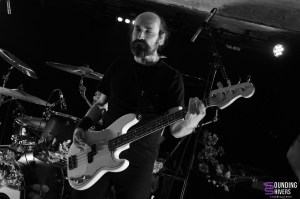 Il était enfin temps de revoir Point Mort ! Quelques années déjà sont passés depuis leur dernier passage dans la métropole Lilloise, mais surtout un nouvel album au compteur, Le Point de non retour, sorti en avril dernier. Avec un décorum extrêmement fleuri, les parisiens déposent une ambiance sérieuse dès les premières secondes. Tous alignés et le regard droit sur le public, on sent d’office que l’on va se faire manger tout cru. Une introduction à la limite du trip hop, nous voilà déboussolé mais lorsque Sam Pillay se mets à screamer, on comprends instantanément que nous ne sommes pas là pour rigoler. Simon Belot à la batterie vient faire vibrer la salle, et se verra même parfois accompagné d’une batterie électronique pour un double effet hyper efficace. Le set est d’une puissance folle, notamment avec les deux guitares mais le public est encore timide. Sam l’annoncera « Vous avez interdiction de bouger moins que moi, qui ait une cheville petée ce soir ». Et effectivement, le public se mets enfin à faire bouger cette fosse et les têtes se mettent à se balancer en rythme. On est totalement fan de l’univers post hardcore des parisiens qui semble vouloir pousser les limites des genres en introduisant des sons parfois électronique, parfois plus sludgy. On sent le groupe plein d’entrain malgré l’heure tardive, et c’est une petite musique d’ascenseur qui vient annoncer le rappel, donnant une dernière occasion au public de faire la fête, ce qu’ils feront en lançant un mini mosh pit, sur un dernier titre où l’amour et le besoin de se retrouver nous est conté. Et c’est sur la bande son « It’s Not Unusual » que l’on dit au-revoir et surtout à bientôt à Point Mort.