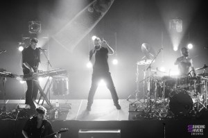 Nous aurions presque pu croire qu’après un tel moment la soirée touchait à sa fin, mais pas du tout, et il ne faudrait surtout pas manquer Leprous. La cohérence des premières parties devient d’autant plus évidente lorsque le groupe ouvre son set avec « Silently Walking Alone », un morceau imprégné de leur son prog caractéristique, teinté de touches expérimentales. Dès les premières notes, la puissance vocale d’Einar Solberg nous embarque dans la dernière épopée de la soirée. Des rythmes saccadés mais entraînants nous propulsent vers « Illuminate ». Aucun doute : le public compte de nombreux fans. Très vite, plus personne ne tient assis, et lorsque les premières notes de « Below » retentissent, quelques cris de joie fusent avant que les paroles ne soient reprises en chœur. Les derniers spectateurs encore assis rejoignent le mouvement.