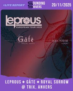 Cette soirée au Théâtre de Béthune aura été un véritable voyage scandinave, porté par trois propositions plutôt différentes mais parfaitement complémentaires. Royal Sorrow a ouvert la voie avec une solide démonstration de metal progressif moderne, Gåte a ensorcelé la salle avec son folklore réinventé et sa magie nordique, et Leprous, fidèles à leur réputation, ont livré un set puissant, généreux et profondément habité. Une soirée où la musicalité, l’émotion et l’intensité n’ont jamais cessé de monter et dont on ressort avec l’impression d’avoir traversé trois mondes en une seule nuit.