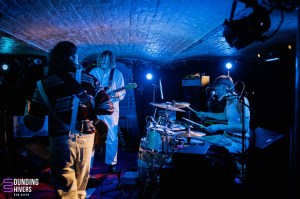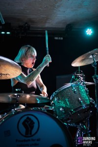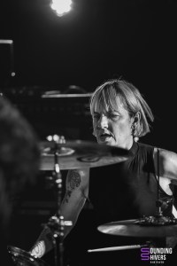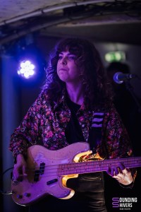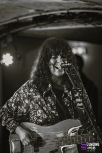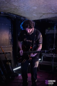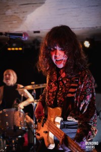 Le premier trio de la soirée ouvre avec un…kazoo! Cela est certes étonnant, mais le groupe arrive à lui donner une sonorité très aérienne, ondulante. Alzamün a scénarisé son entrée de scène, en faisant un instant solennel où on prend contact avec le groupe. Les riffs et les sonroités de percussion ont quelque chose d’oriental, évoquant le désert, le sable et le soleil. L’aspect psychédélique des compositions arrive très rapidement dans la prestation, avec un jeu puissant et envoutant. Certains passages se font même vraiment rythmés. Les musiciens jouent avec les effets grâce à leurs pédaliers. Le son de la guitare peut même se faire très clair, tandis que par moments c’est la basse qui prend le lead. Le trio a un réel charisme et habite la scène. Quelques fans sont d’ailleurs présents dans la salle et s’ambiancent sur les riches titres. Les parties instrumentales sont tout simplement magistrales, tout comme les passages où les trois voix se mêlent. On peut retrouver des côté éthérés qui nous entrainent dans une certaine rêverie, avant que la puissance psychédélique et presque stoner viennent nous récupérer. Alzamün a tout juste finit de composer “Big Boat” pour pouvoir nous la présenter ce soir. Cette nouvelle venue démarre quasiment a capella, reprend l’ADN du groupe, tout en y incorporant des rythmiques festives qui évoquent le Brésil, avec en plus un sifflet qui attire l’attention de chacun. “Sing a Song” est, elle, une composition rythmée et légère à la fois. Le kazoo planant est de retour en fin de set, comme pour boucler la boucle. La prestation, particulièrement qualitative et travaillée, est grandement applaudie. Le trio lillois a de belles heures devant lui !