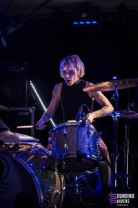 The evening continues with a second trio and a promise: This Will Destroy Your Ears. Pierre-Johann (vocals, guitar) wears a headset microphone that allows him to move freely while maintaining excellent sound quality. A slight reverb creates a post-punk atmosphere. The effects on the guitar sometimes give it a haunting feel, echoing rich emotions. Pierre-Johann continues to sing while changing guitars. Behind him, Magali (drums) is energetic and determined. The rhythm is clear and precise. In some passages, she uses a bell as a second drumstick, modulating the sounds and giving a slightly more experimental and original feel. Pierre-Johann also innovates by tapping his guitar strings with a small metal object. This gives the guitar a low sound, accompanied by heavy bass, contrasting with the light bells. Some compositions are quite serious, almost heavy. They contrast with lighter, more rhythmic and almost festive ones, such as ‘Ready to Go’. The emotions conveyed are complex, mixing joy, melancholy, and sometimes even resignation. At times, Léa (bass), back at La Malterie after her appearance with Péniche in early October, also takes up the vocals to form a duo that responds to each other with beautiful energy, sometimes almost a cappella. Certain passages evoke the post-punk band Structures. The tracks are effective, and we really invite you to discover ‘This is Why’ if you haven’t already. The trio shows a pleasure in being on stage and a beautiful complicity. The concert ends with a particularly captivating and rather long track. This Will Destroy Your Ears then leaves the stage to the sound of ‘Pump up the Jam’, applauded by a captivated audience.