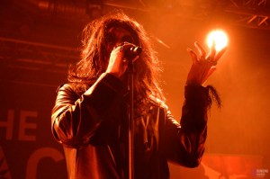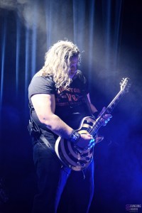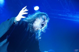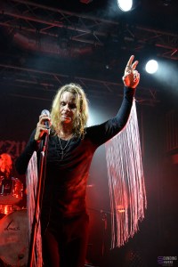 Soudain, la tension monte d’un cran lorsque les incontournables chœurs apocalyptiques de “O Fortuna”, signature des concerts d’Ozzy, envahissent le Black Lab. Au tour de Ozzyfied de faire le show en interprétant les tubes de la carrière solo. Sous sa capuche, le frontman prend le micro et attaque sans plus attendre “I Don’t Know” du mythique album Blizzard of Ozz (1980). Difficile d’y croire : la voix est bluffante et colle fidèlement à celle d’Ozzy ! Pendant ce temps, à sa droite se trouve son guitariste muni d’une guitare jaune et noire… évoquant évidemment le modèle « Bullseye » de Zakk Wylde ! Ceci étant dit, le clou du spectacle se produit quelques minutes après le début : Henning Wanner (de son vrai nom) retire sa capuche et un grand « WOW » s’échappe de la foule. Le public n’en revient pas. Nous avons face à nous une quasi-réincarnation d’Ozzy Osbourne, sosie vocal et physique. Incroyable ! Tout au long du set, il enchaîne les costumes et accessoires cultes, des simples lunettes rondes au long manteau à paillettes, en passant évidemment par les franges. Sur des hymnes tels que “Mr. Crowley” ou encore “Crazy Train”, on s’y croirait ! Le chanteur s’adonne même à un petit happening lors de “Bark at the Moon” en recréant l’accident de la chauve-souris (cette fois-ci en plastique, ouf !). La foule est en ébullition du début à la fin avec un mosh pit bien mouvementé. Parmi les musiciens, il faut souligner le travail titanesque du guitariste Andre Goldenstein, maniant les cordes avec une aisance et une précision à en faire pratiquement oublier les originaux (Zakk n’a qu’à bien se tenir !). Bien que Ozzyfied se concentre sur la carrière solo, le groupe termine son set en apothéose sur les légendaires “Paranoid” et “War Pigs”, faisant directement écho au début du set de Sabotage.