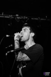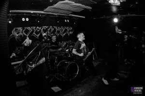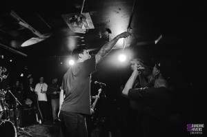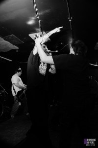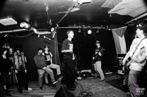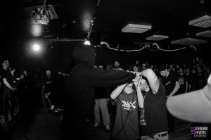 Lorsque nous arrivons à la Brat Cave, Significant Damage est déjà en pleine prestation… ou plutôt, quelque part derrière le mur humain compact qui bloque totalement l’accès à la salle. Impossible de mettre un pied à l’intérieur : la pièce est pleine à craquer jusqu’à la porte d’entrée. Une impression de complet renforcée par un pit ouvert occupant presque la moitié de la salle, animé par trois ou quatre personnes décidées à mosher coûte que coûte. Résultat : nous ne verrons rien du set, si ce n’est la ferveur palpable jusque dehors.
