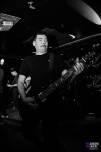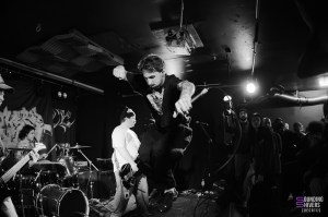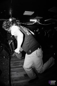 When we arrive at the Brat Cave, Significant Damage is already performing… or rather, somewhere behind the compact human wall that completely blocks access to the room. It’s impossible to set foot inside: the room is packed to the rafters right up to the entrance. The impression of fullness is reinforced by an open pit occupying almost half the room, animated by three or four people determined to mosh at all costs. As a result, we won’t see anything of the set, except for the fervour that is palpable even outside.