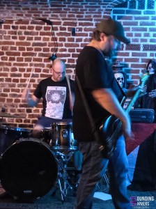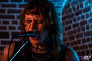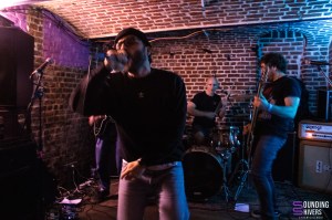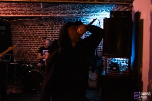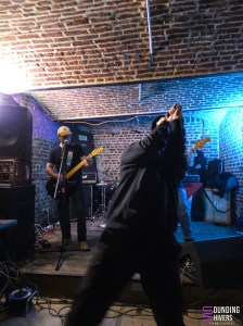 Il est temps d’accueillir sur scène Without Skin, de qui on a entendu beaucoup de bien! Dès les premiers instants du set, leur chaotic hardcore vient nous prendre aux tripes. Et cette force émotionnelle vient entre autre du fait que deux voix se mêlent sur scène, celle de Romain et celle de Gaby. On sent une urgence dans leurs hurlements et cela vient nous toucher au coeur. Evidemment Marco à la batterie n’est pas en reste et nous enchante avec un jeu percutant. Le côté chaotique de leur musique est contre balancé par des thématiques, une fois de plus, très fortes et chacun des morceaux joués vient nous confirmer que notre amour naissant pour la formation ne fera que grandir. Gaby évoque le combat des personnes transgenres pour un morceau qui autant vous dire touche juste et remue autant nos entrailles qu’il fait bouger nos têtes. Leur énergie scénique captive le public qui suit leur set avec une grande attention tout en n’hésitant pas à bouger un peu dans la fosse. Avec déjà plusieurs disques au compteur, et en particulier Collecting / Inner Debts représenté par plusieurs morceaux ce soir, le groupe a déjà de belles compositions à faire découvrir et on se dit vu la puissance de leur musique que leur audience devrait être bien plus large, tant leur musique nous touche. Difficile de trouver les mots quand un set vous emporte à ce point mais on peut vous dire que Without Skin ont marqué le High Voltage et fait de cette fin de soirée un moment immanquable qu’on espère pouvoir revivre ailleurs très rapidement! Le groupe remercie vivement l’orga et le public pour l’accueil et quitte la scène visiblement ravi par cette soirée lilloise.