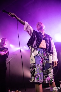 Le public est déjà présent en nombre dans le club et nous voilà prêts à accueillir Güner Künier sur scène. Accompagnée de sa guitariste, elle se lance rapidement dans un set énergique où guitares et claviers se mêlent sur des beats plus électroniques. On sent de multiples influences dans la musique de l’artiste Allemande mais le post punk et ses influences turques sont au coeur de sa musique. Les deux musiciennes enchaînent rapidement les titres et leur amitié est évidente sur scène. Güner Künier nous présente une belle partie de sa discographie, grâce aux morceaux relativement courts qui permettent en 45 minutes de nous en proposer un grand nombre. La musicienne alterne entre claviers et guitare pour faire de chacun des titres une aventure unique. Mais de notre côté au bout d’un certain temps on trouve que certaines sonorités reviennent un peu trop souvent et que certains gimmicks sont un peu trop présents. Sans nous sortir de la prestation qui reste de très bonne facture, cela nous perd malheureusement un peu. On profite de la fin du set d’un peu plus loin et les applaudissements résonnant entre chaque titre et en fin de set montre qu’une large partie du public a été conquis par la proposition de Güner Künier.