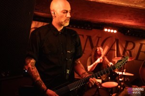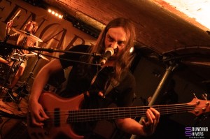 C’est Sycomore qui ouvrent le bal, devant une salle déjà bien garnie. Une excellente occasion de (re)découvrir le trio sur scène, plus de deux ans après la sortie d’Antisweet, que nous vous avions chaudement recommandé à l’époque. Dès les premières notes, le ton est donné : un son massif, brutal, qui fait vibrer chaque recoin de la Malterie. Le sludge de Sycomore est profond, rugueux, porté par un chant rauque et puissant. La rythmique, rapide et nerveuse, pousse les musiciens à se démener sans relâche, frôlant parfois la catastrophe matérielle tant les pieds de micro semblent menacés pendant que les premiers headbangs apparaissent dans le public. Mais la vraie force de Sycomore réside dans ses influences assumées : des riffs flirtant avec le psychédélisme s’invitent au cœur de cette masse sonore sans jamais casser la dynamique. Le groupe s’amuse, communique, remercie un public déjà conquis. Une bonne humeur contagieuse traverse même les passages les plus lourds du set, qui s’achève sur des textures plus post-metal, créant naturellement le lien avec la suite de la soirée. Une entrée en matière solide et parfaitement maîtrisée.