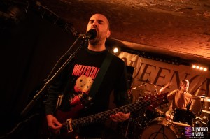 Next up was Yarostan, straight from Marseille. If you’re a regular reader, you’ll know how much we love screamo, especially when it’s sung in French. Suffice to say, we were eagerly awaiting this gig, as their albums were already on constant repeat in our homes. And to put it mildly, the quintet did not disappoint. The set opens with “Cathédrale de Poussière”, the opening track from their latest album III. The atmosphere changes instantly: here, it’s no longer about heavy riffs, but melodic and visceral screamo, punctuated by vocals screamed from the gut, sometimes even far from the microphone, which only amplifies the thrills. In the front row, several audience members sing along in unison (we plead guilty), and a connection is formed immediately. On stage, it’s a veritable tidal wave: the five musicians are constantly on the move, driven by the energy of a wall of three intertwining guitars, sometimes to the point of merging, yet never detracting from the emotional power of the whole. Time stands still with “Godot”, its eight minutes brimming with shifts in rhythm and atmosphere. A moment of absolute grace. Yarostan delivers a deeply moving performance here, leaving us with the certainty that we have witnessed something powerful.