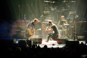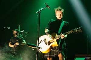 Celkilt démarre tout de suite après, sans transition. La cornemuse de Iain MacWind retentit dans le Zénith et on entre rapidement dans l’ambiance festive que provoque la formation. Les compositions enjouées donnent envie de danser, de fêter… Le violon de Ana MacFive nous emporte dans des mélodies joyeuses. Le public bouge, répond au groupe… On sent que Celkilt sait tenir la scène. La voix de Titou MacFire nous fait totalement rentrer dans l’univers punk rock qui caractérise la formation. Il harangue le public qui participe avec plaisir et entrain. Et alors que le groupe nous propose d’aller faire un petit tour en Bretagne, on entend des airs qui nous rappellent Matmatah et ravissent nos oreilles. Le Zénith entier s’ambiance sur les titres, et cela fait un plaisir immense de les voir gérer une aussi grosse salle. Nous avions en effet vu la formation au Black Lab il y a presque un an jour pour jour. Ici, Celkilt défie le public du Nord de chanter plus fort qu’une cornemuse. Et je pense vraiment que le pari a été relevé haut la main! Comme de coutume, ils transforment le traditionnel wall of death en wall of love, restant ainsi dans l’ambiance bon enfant du show. On entend parfois des éléments issus du pop punk dans leurs titres accessibles et mélodiques. C’est d’ailleurs particulièrement le cas dans les nouveaux titres joués ce soir. La voix de Ana MacFive se fait parfois entendre, dans un côté très Unleash the Archers. Evidemment avec cette ambiance, impossible de faire l’impasse sur la Saint Patrick fêtée quelques jours plus tôt. “Every Day’s Saint Patrick Day” enflamme le public qui est visiblement en grande forme. Celkilt fête actuellement ses 15 ans d’existence et a d’ailleurs prévu de faire les choses en grand avec une Cigale en octobre prochain.