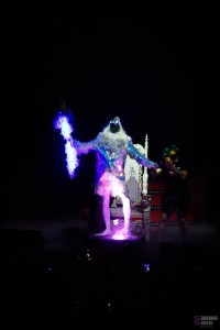 Then, when “Mouss 2 Mass” – recorded with Mouss from Mass Hysteria – kicks in, several technicians and roadies take to the stage wearing masks depicting the singer. We are then overrun by robots for “Dead Robot Zombie Cop From Outer Space II”, whilst Léa Bouchard lends her voice to the track.