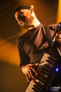 Lorsque Raimundaaaaaa investit la scène, la salle est déjà bien remplie. Le duo, composé d’Alexis et Daniel, annonce humblement qu’il s’agit seulement de leur deuxième concert en première partie. Venant de Bonnelles, dans la vallée de Chevreuse, les deux acolytes proposent un mélange aussi inattendu qu’efficace : une électro teintée de bossa nova, portée par une grande liberté de ton. Très vite, la magie opère. Les morceaux, tantôt absurdes, tantôt tendres, parlent d’amour, de vie rurale ou encore… d’hommes qui soulèvent de la fonte. Le tout est servi avec un humour désarmant qui déclenche sourires et rires dans le public. Contre toute attente, la foule se montre immédiatement très démonstrative : applaudissements nourris, cris enthousiastes entre chaque morceau, une ferveur qui semble presque déstabiliser les musiciens eux-mêmes. Rarement un groupe d’ouverture aura bénéficié d’un tel accueil. Le set alterne compositions originales et reprises, dont une version totalement débridée de « Tata Yoyo », et se conclut sous une ovation générale. Le public réclame un rappel, relance les applaudissements même lorsque les musiciens reviennent simplement ranger leur matériel sur scène. Alexis, visiblement ému, peine à cacher sa surprise. Une entrée en matière plus que réussie, confirmant une fois de plus la réputation chaleureuse du public nordiste.