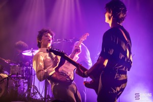 The main set ends with « Avis de tempête » (Storm Warning), a truly theatrical moment that ignites the venue. But it’s impossible to stop there: spurred on by insistent encores, Sam returns for « Un cri dans le métro » (A Cry in the Metro), then an acoustic version of « Ne t’en fais pas pour elle » (Don’t Worry About Her), an opportunity to introduce his musicians, including Doriane on drums, who is celebrating her birthday that evening. The audience sings along at the top of their lungs, to the point that Sam jokes about not having hired a warm-up act. During this song, he even goes so far as to imitate a trumpet with his voice. The concert ended with « La fin du monde » (The End of the World), as the musicians descended into the pit, guitars in hand, for a final crowd surf.