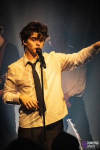 After a short break, the excitement rose a notch: Sam Sauvage was expected as the star of the evening. He made his entrance, shaking hands with the front-row spectators before launching into « Les gens qui dansent (j’adore) » (People who dance (I love it)). Instantly, bodies began to move. His facial expressions, gestures, and energy created a unique persona, one that could even be described as magnetic. At only 25 years old, Sam impressed with his stage presence and, above all, with his singular voice, capable of shifting from gentleness to rage in an instant. The concert continued with more subdued songs, delivered with sharp lyrics. Before « Dans le photomaton » (In the Photo Booth), he announced, with a wry smile, that it was the love song of the evening and that afterward, the audience was in for a « one-way trip to certain depression. » The joke drew laughter, but what followed confirmed a growing emotional intensity.