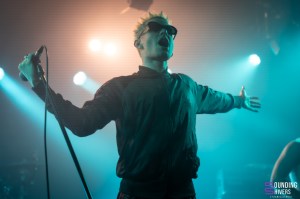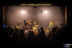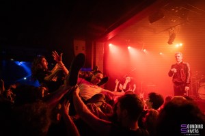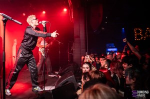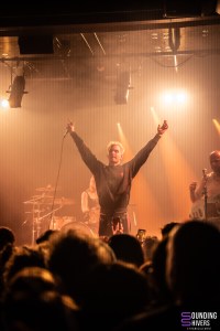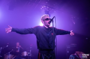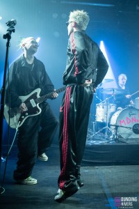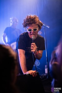 Then things really pick up pace; MDNS asks if the crowd has listened to his latest EP, DRACHE!, before getting the audience to join in on the chorus of “Sexe, Drogue & Drame” with the line “It stinks of shit” – brilliant lyrics, as MDNS jokes. Even without prompting, the crowd doesn’t hesitate to sing along to the choruses in unison. Next, “Téléphone” and “La Faute à Qui” maintain this wild energy. MDNS runs and jumps all over the place whilst the musicians get on with their task perfectly, with similar fervour, and in the crowd, this energy is just as palpable. Pogo pits break out regularly and grow as the concert progresses; a few people are slam dancing, but everyone is jumping and shouting until they’re hoarse.