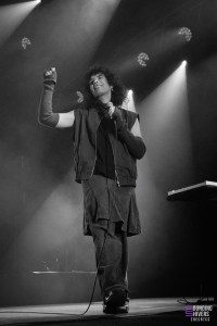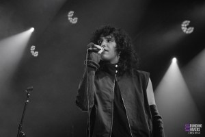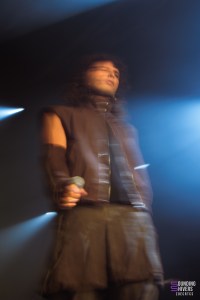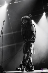 La pause est de courte durée et permet de relancer encore mieux l’énergie avec “GUILLOTINE”, où le guitariste abandonne sa guitare, saisit son micro et rejoint Théa sur le devant de la scène. L’énergie entre les deux est plus que palpable, et dans le public on saute, même au balcon le public ne reste pas statique.